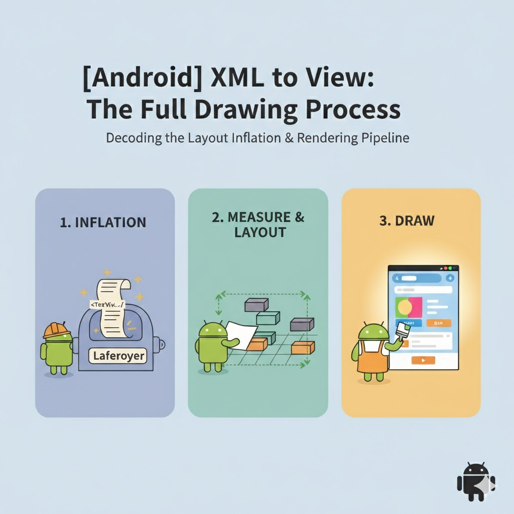 이번 글에서는 XML → View 객체 → Measure → Layout → Draw 이 전체 과정을 흐름 위주로 정리해보겠습니다.